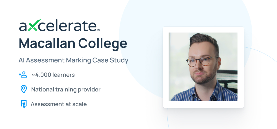 Macallan College uses AI within the aXcelerate Learning Management System to support assessors with short answer assessment marking – improving feedback consistency and reducing marking time while maintaining full human oversight.